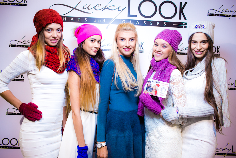 На протяжении всего вечера профессиональные модели представляли собравшимся несколько образов от Lucky Look. Показывая, что как минимум 3 головных убора и аксессуаров к ним в разных стилях можно подобрать каждому человеку.