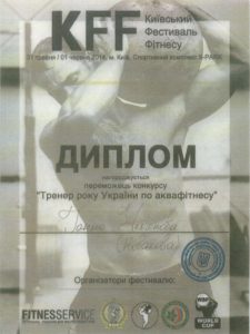 Тренером года стала уже известная нам спортсменка Анна Ульянова (Новикова), которая неоднократно побеждала на соревнования не только по всей Украине, но и в Европе. В Киеве же в самом начале лета она получила звание «Тренер року України по аквафітнесу». Для Анны это уже не первая триумф, но в комментарии нашему журналисту она сказала, что ее радует каждая победа, так как это стимул становиться лучше и двигаться вперед.