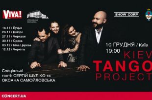При поддержке Посольства Аргентинской Республики в Украине, 10 декабря 19.00 в Национальном Дворце «Украина» (малый зал) прозвучат «Мировые хиты в стиле танго» от KIEV TANGO PROJECT. Станьте зрителем единственного концерта в Киеве в 2018 году, приуроченного ко всемирному Дню танго. После серии европейских концертов KIEV TANGO PROJECT подарит танцевальные и концертные мелодии в стиле танго. В этот вечер вы услышите любимые мелодии в эксклюзивных аранжировках, а также мировые хиты в стиле танго. KIEV TANGO PROJECT — музыкальный феномен Украины; — любимцы звезд шоу-бизнеса (творческие коллаборации Джамала, ALYOSHA, Константин Томильченко, NK (Настя Каменских), Надежда Мейхер, Екатерина Кухар, Андрэ Тан и др.; …
