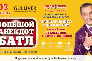 3 августа в ТРЦ «Гулливер» состоится премьера нового народно-юмористического шоу от продюсерского центра «Дядя Жора Company» «БОЛЬШОЙ АНЕКДОТ БАТЛ» Автор и ведущий проекта – известный юморист, шоумен, продюсер, артист Вадим Мичковский, которого все знают под звучным, творческим псевдонимом Дядя Жора. «Мне давно хотелось запустить что-то неординарное и одновременно легкое, доступное всем. А какой жанр у нас в стране доступен всем без исключения? Конечно же, анекдоты! Ни одно застолье, ни одна встреча не обходится без них. Да и кто из нас не попадал в жизни в анекдотические ситуации!» Принять участие в шоу могут все жители Украины в возрасте от 16 до 116 …