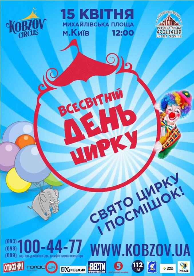 На честь Міжнародного Дня цирку 15 квітня 2017 року в Києві відбудеться грандіозне свято циркового мистецтва! Наших гостей чекають яскраві циркові номери від учасників міжнародних циркових фестивалів, майстер-класи артистів цирку, веселі конкурси та розіграші, а також феєричні виступи дитячих циркових студій. Спеціальні гості свята – майбутні учасники найпрестижнішого в світі циркового фестивалю в Монте Карло