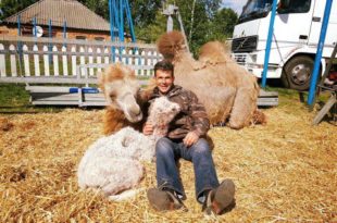 Как сообщает основатель цирка Николай Кобзов, малыш еще неуверенно стоит на ногах, но весел и активен, и чувствует себя хорошо. Уже скоро его начнут кормить не только молоком матери, но и взрослой пищей: сеном, овощами и сухариками – их верблюды особенно любят. Уже сейчас он начинает знакомиться с окружающим миром и сородичами, которые проживают рядом с ним. Малыш родился весом 20 килограмм и 500 грамм, а рост 1 метр и 8 сантиметров. Среди двугорбых это считается более чем норма. Стоит отметить, что это уже 124-е животное, родившееся в данном цирке. О том, что верблюдица по имени Жада родила будущую звезду …