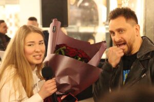 Минулого тижня стартував весняний тур гурту СКАЙ. 35 концертів на підтримку нового альбому «Напролом» пройдуть в містах України від заходу до сходу. Початок тура розпочався з фан-зустрічі, під час якої прихильники могли поставити питання, взяти автограф та сфотографуватися з учасниками гурту. Прийшло багато охочих поспілкуватися з улюбленим гуртом, все було достатньо дружно та спокійно, поки крізь натовп не прорвалась вона — дівчина з величезним букетом троянд. Прихильниця назвалася Мариною та трішки розповіла про свої «відносини» з Олегом Собчуком — він їй щоночі сниться, тому вона проїхала 14 концертів, але ніяк не могла поспілкуватися зі своїм кумиром віч-на-віч. Тому, почувши про фан-зустріч, Марина приїхала до Житомира, щоб поспілкуватися з фронтменом, подарувати квіти, зізнатися в коханні та… освідчитися. Для Олега це було неочікувано, а прихильники, затамувавши подих, чекали на відповідь — погодиться чи ні. У відповідь була лише інтрига.