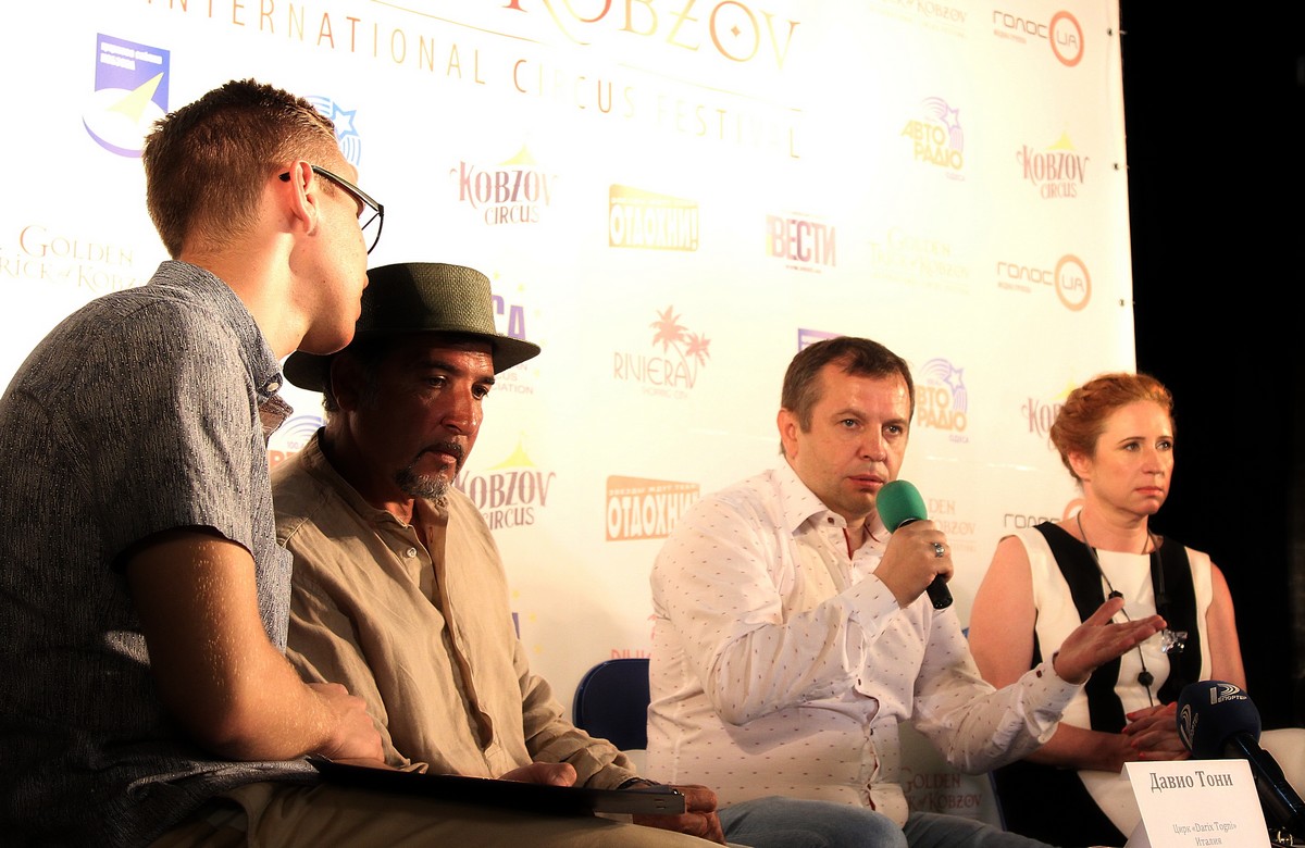 На пресс-конференции компанию Николаю Кобзову составила продюсер театра «Маски-Шоу» Наталья Делиева, которая рассказала о своем участии как члена жюри на фестивале, и артист итальянского цирка «Darix Togni», дрессировщик Давио Тони, для которого участие в фестивале «не выбор, а шанс».