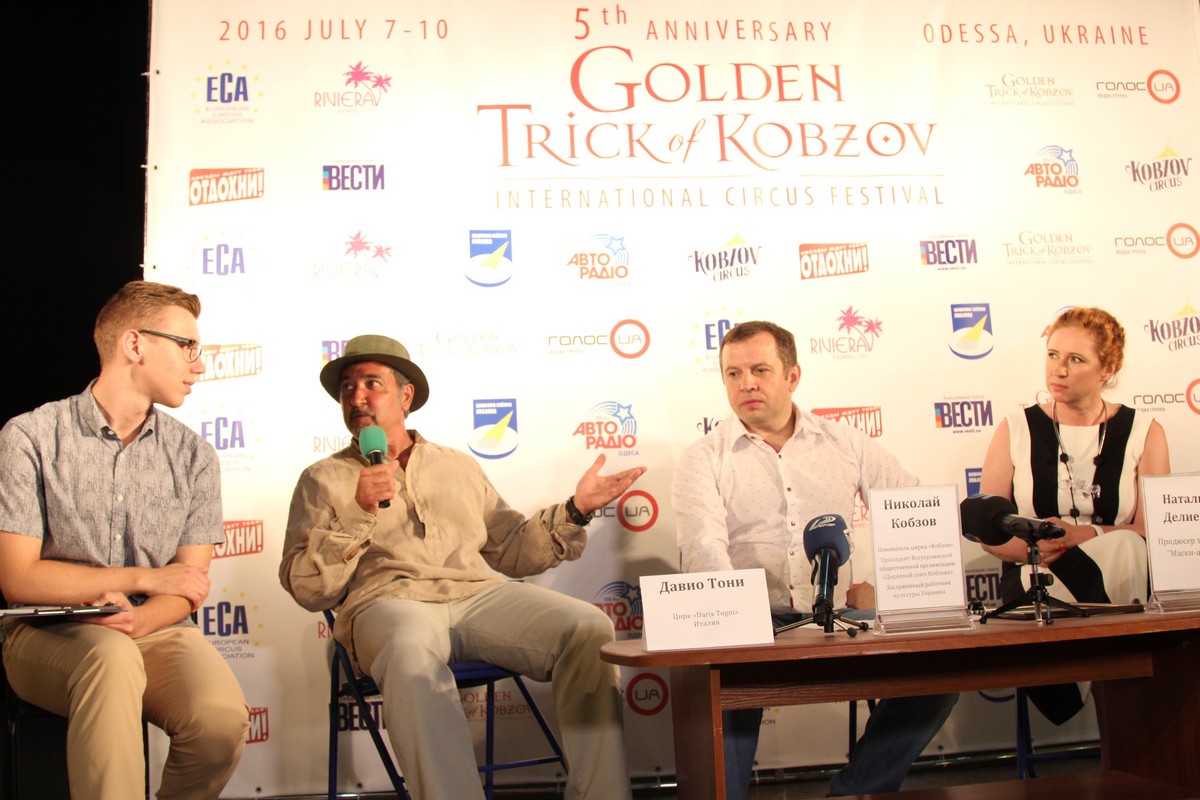 Сегодня (1 июля) в одесском Доме Клоунов состоялась пресс-конференция основателя цирка «Кобзов», президента Всеукраинской общественной организации «Цирковой союз Кобзова», Заслуженного работника культуры Украины Николая Кобзова с представителями местных СМИ, посвященная старту пятого юбилейного международного циркового фестиваля «Золотой трюк Кобзова».
