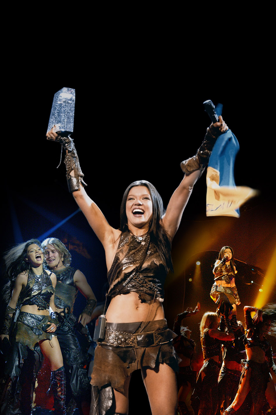 - В 2004 году всего второй раз Украина принимала участие в конкурсе Евровидение. Руслана представляла страну с песней «Wild Dances» и Украина впервые получила победу на международном песенном конкурсе Евровидение.