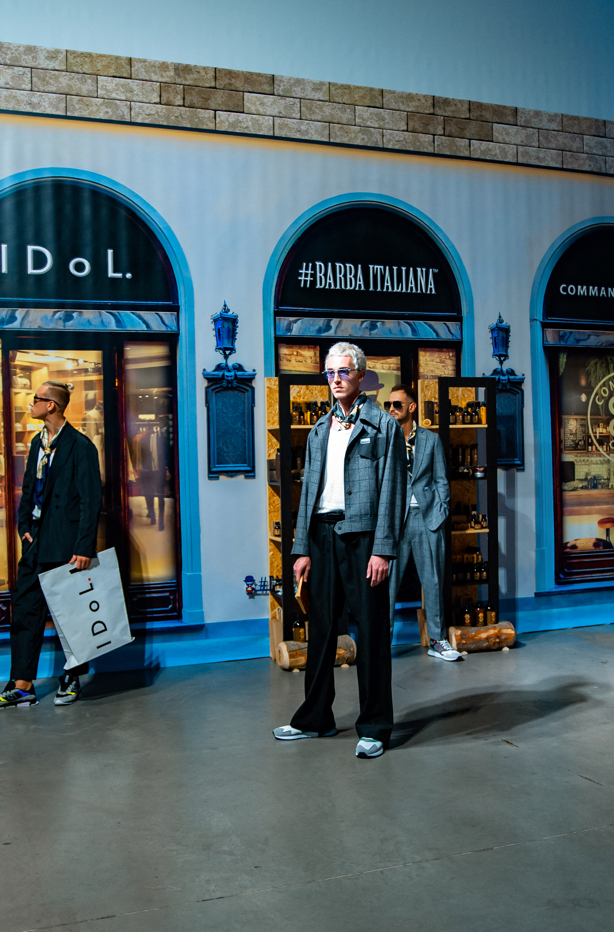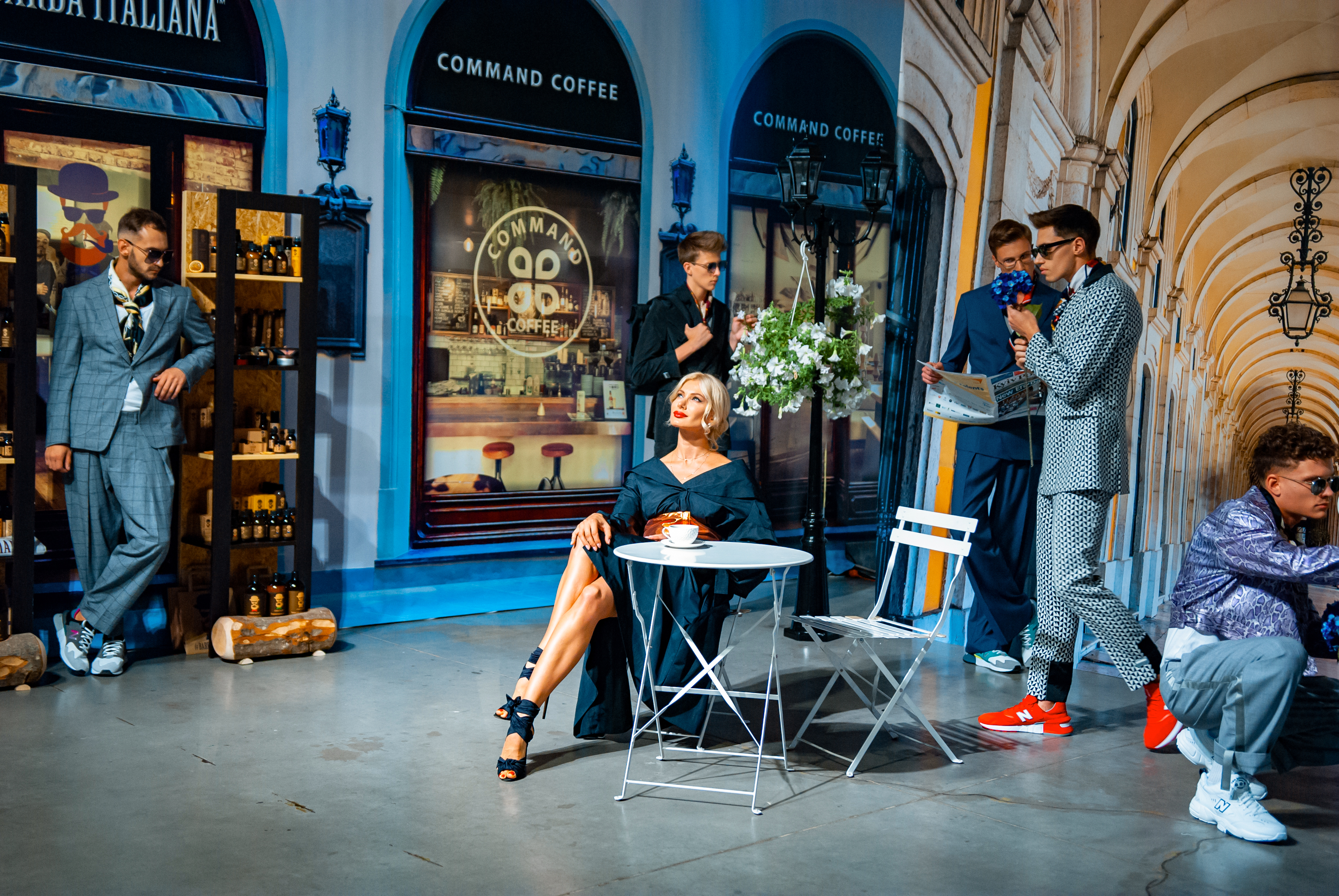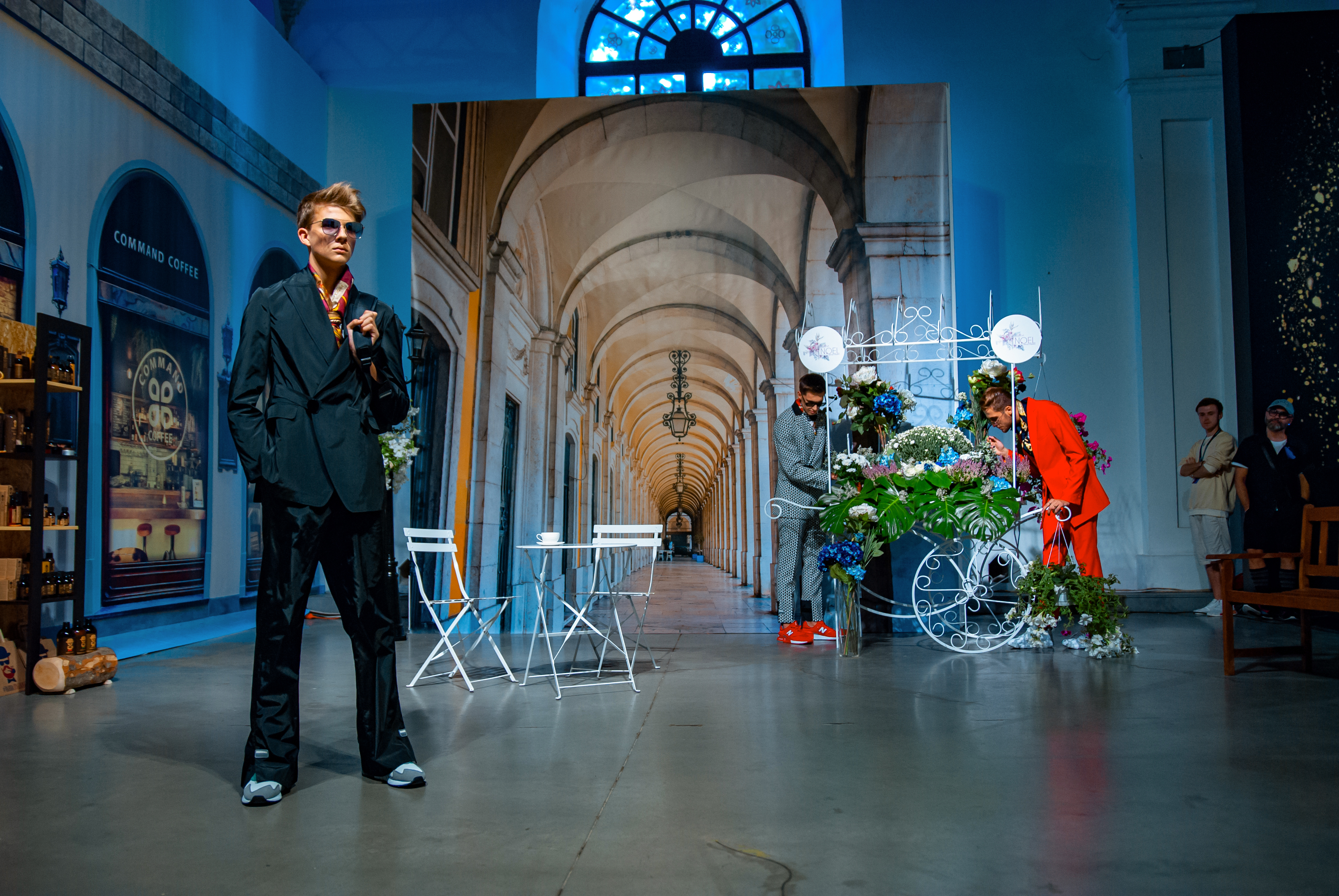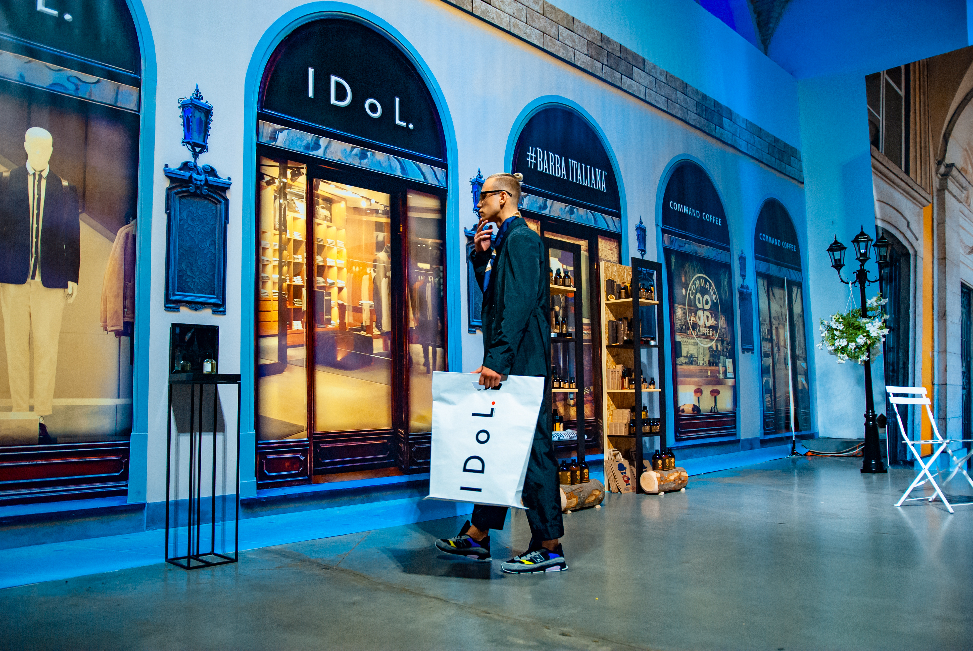 Для проведения показа дизайнер стилизовал свой brand-space под улочки Флоренции: уютные, концептуальные кофейни, цветочные лавки, бутики с парфюмами и итальянской косметикой для мужчин. Атмосферу флорентийских улочек создавали цветочные декорации от Noel, нишевый аромат от parfum büro и кофейный бренд Command Coffee.
