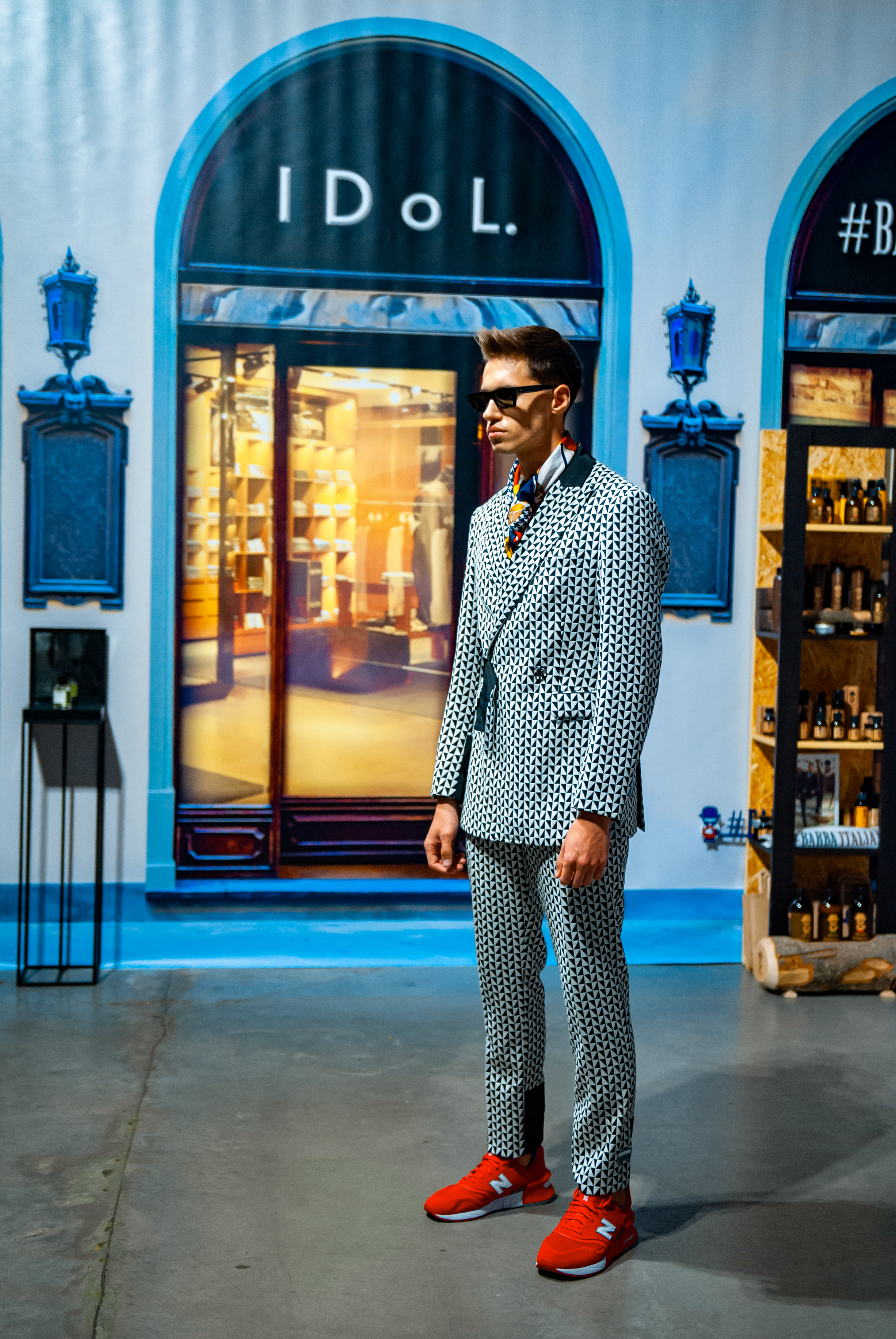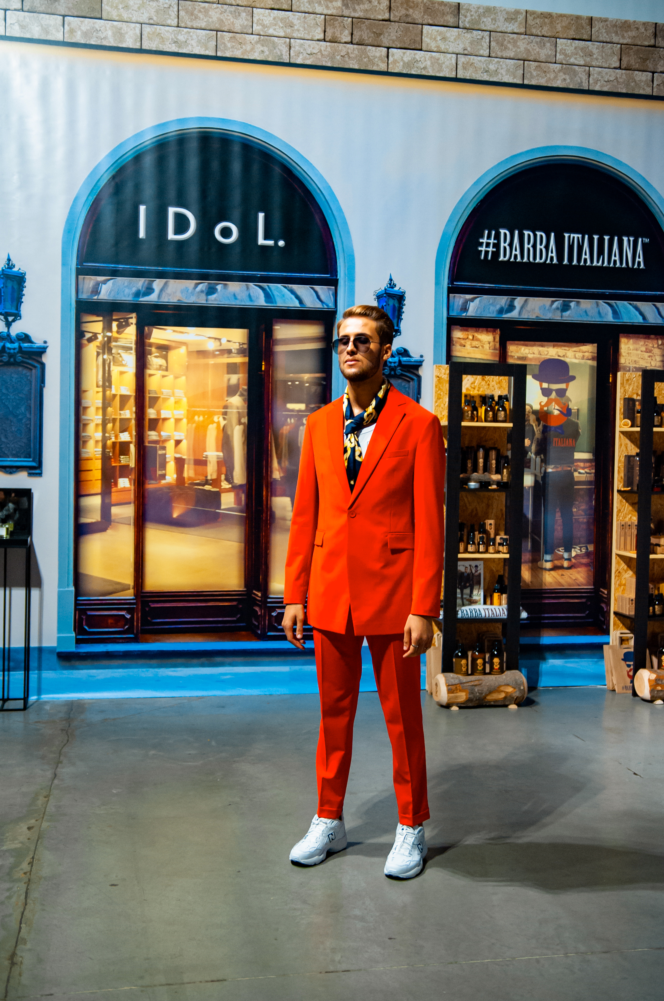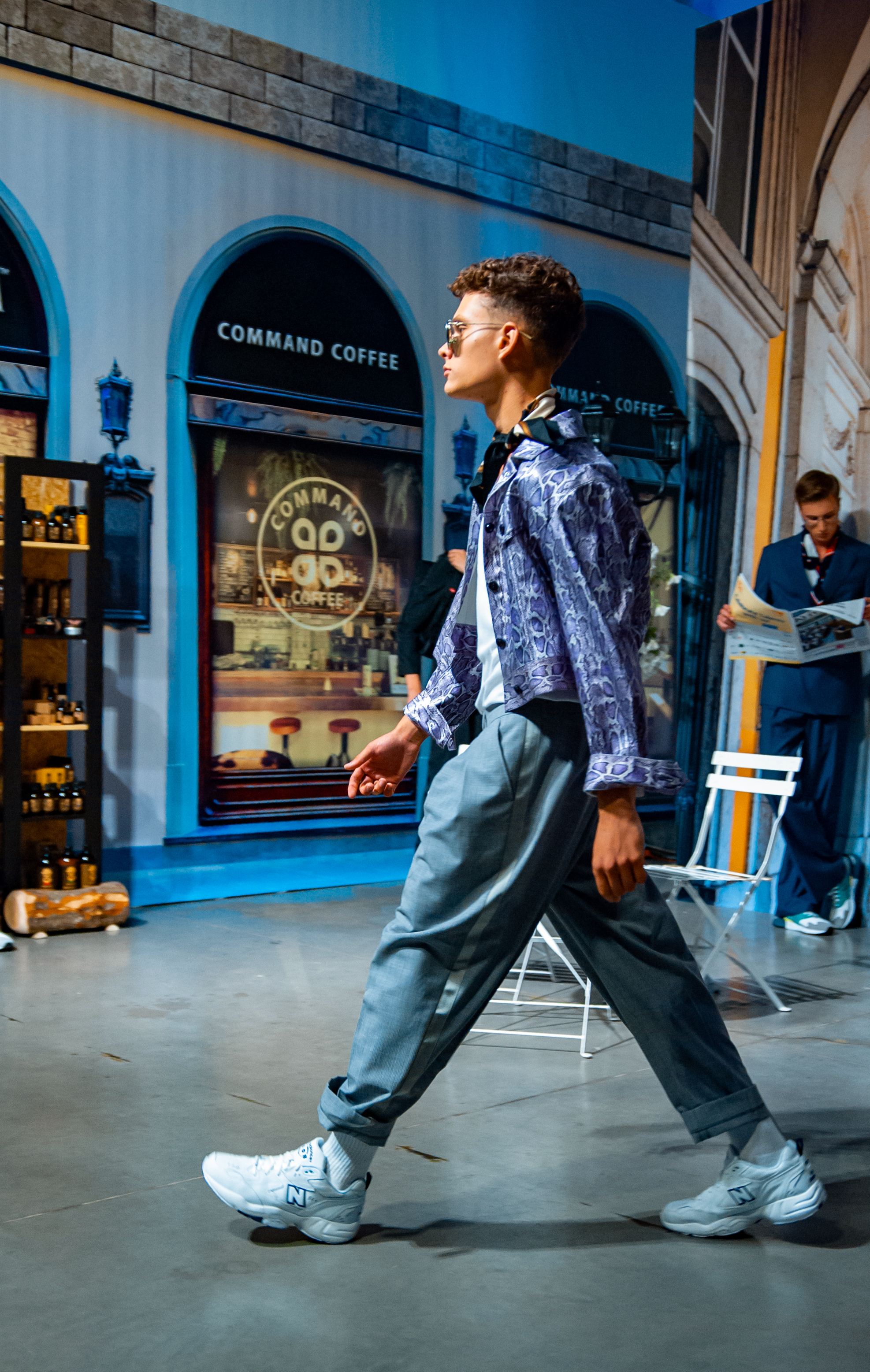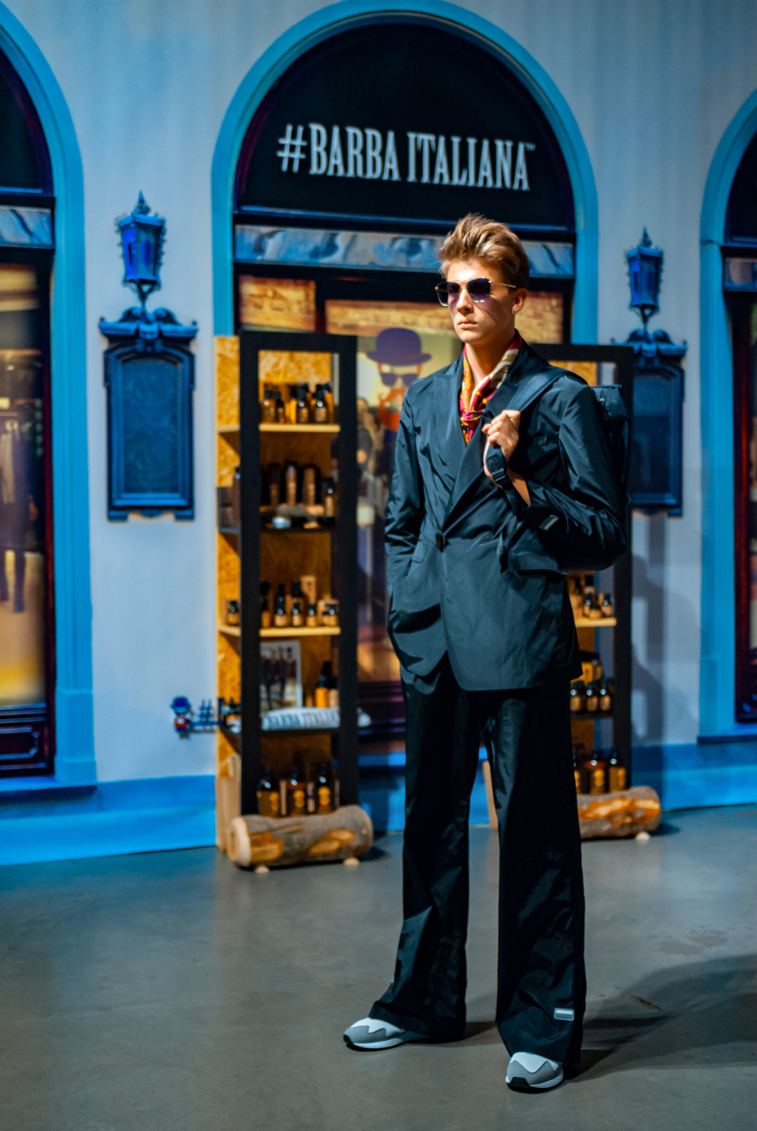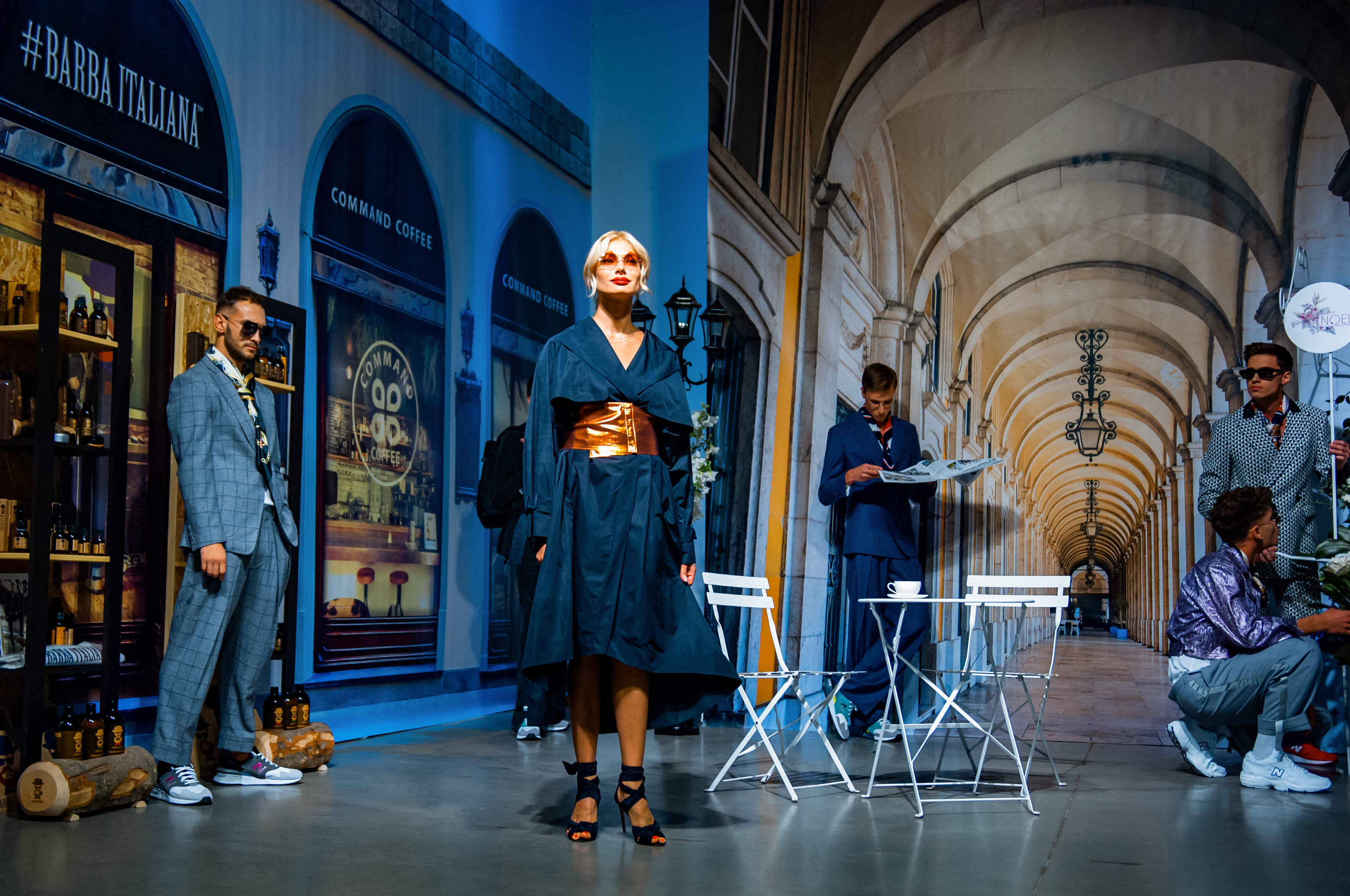 Для проведения показа дизайнер стилизовал свой brand-space под улочки Флоренции: уютные, концептуальные кофейни, цветочные лавки, бутики с парфюмами и итальянской косметикой для мужчин. Атмосферу флорентийских улочек создавали цветочные декорации от Noel, нишевый аромат от parfum büro и кофейный бренд Command Coffee.