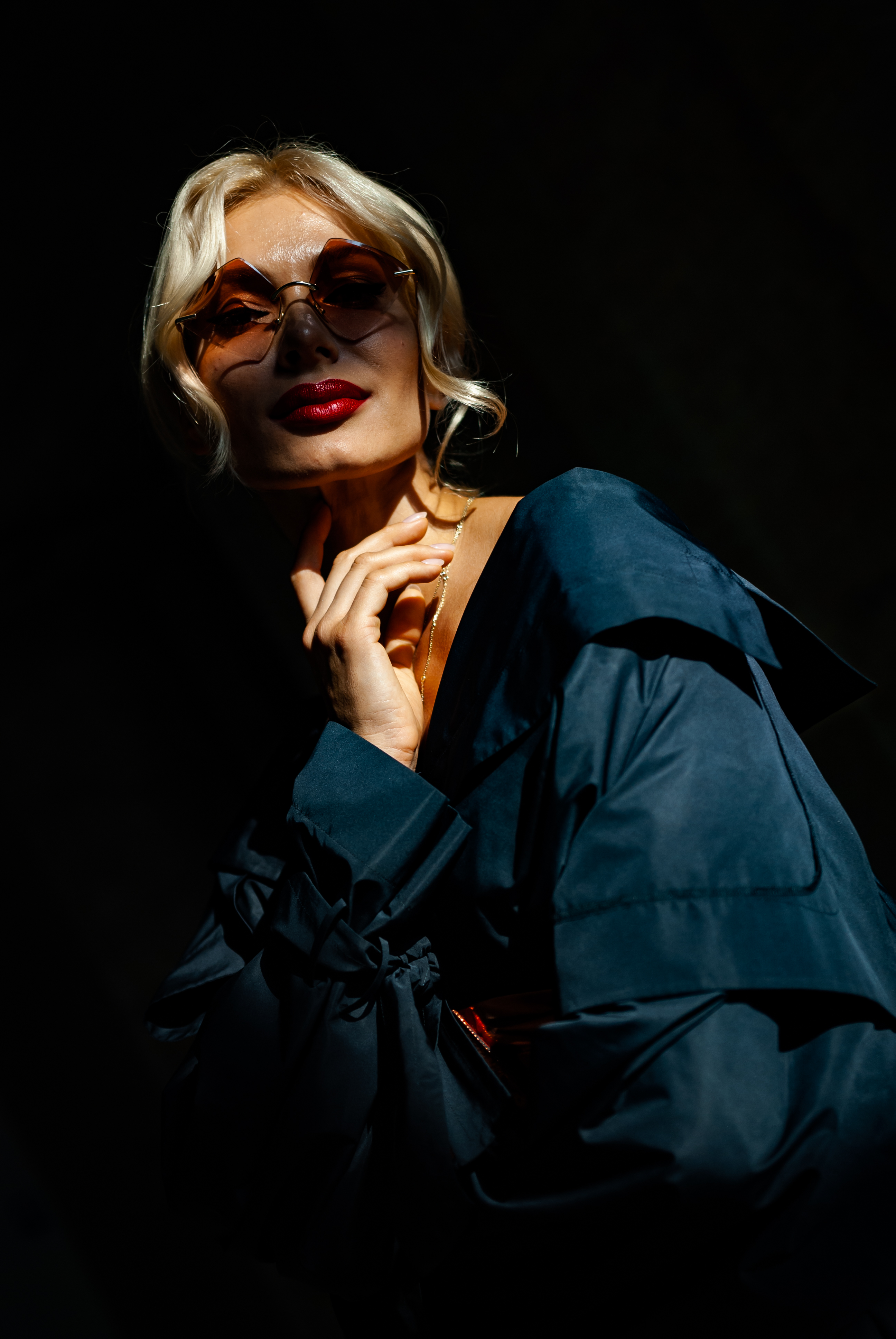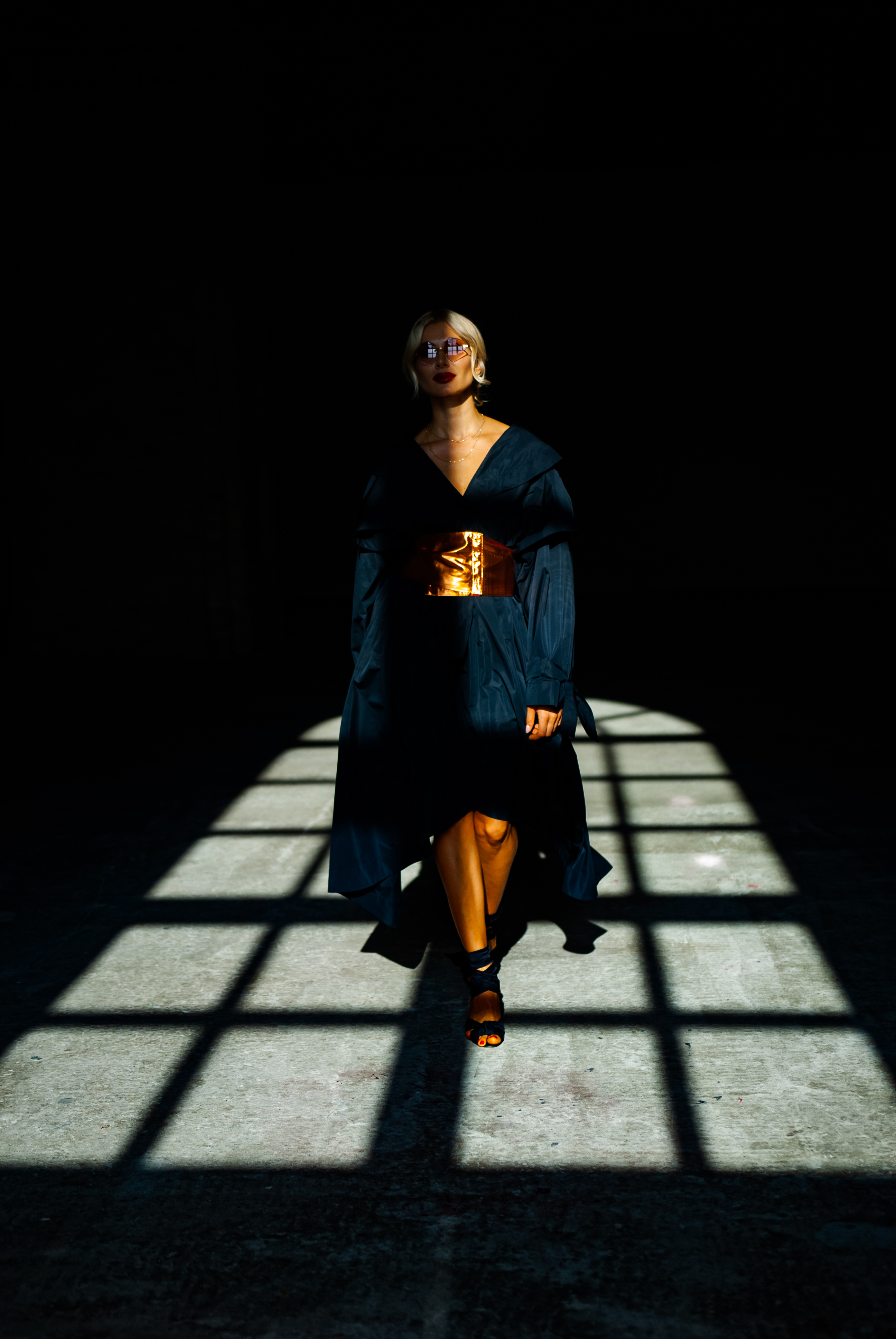 По сюжету театрализованного показа, модели-мужчины прогуливались по улицам Флоренции, пытаясь произвести впечатление на главную героиню перфоманса – художницу Лану Кауфман. Ведь именно в костюме IDoL Ее образ, наполненный женственностью, внутренней силой и харизмой, Серж Смолин ассоциирует с примером успешной женщины современности. Ее look дизайнер продумал в возвышенном сексуальном ключе. Лана предстала перед публикой в длинном темно-синем плаще из тончайшего муара с глубоким декольте и высоким разрезом сзади. Изгибы женской фигуры подчеркнул тугой бронзовый корсет, затянутый на талии.