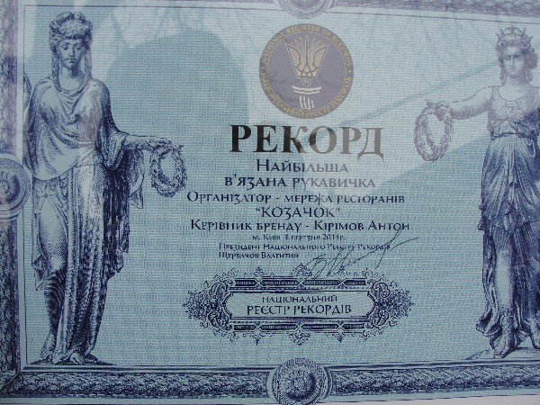 Также в первый день весны в «Козачках» на Осокорках был зафиксирован рекорд – связана самая большая рукавичка. Вязали ее в ресторанах этно-ресторации «Козачок» на протяжении месяца, а рекордный размер был зафиксирован представителями Книги рекордов Украины. На ее изготовление было использовано 18 тыс. метров нити, рукавичка получилась по-настоящему огромной: высотой 3,3 метра, а шириной – более 2 метров.