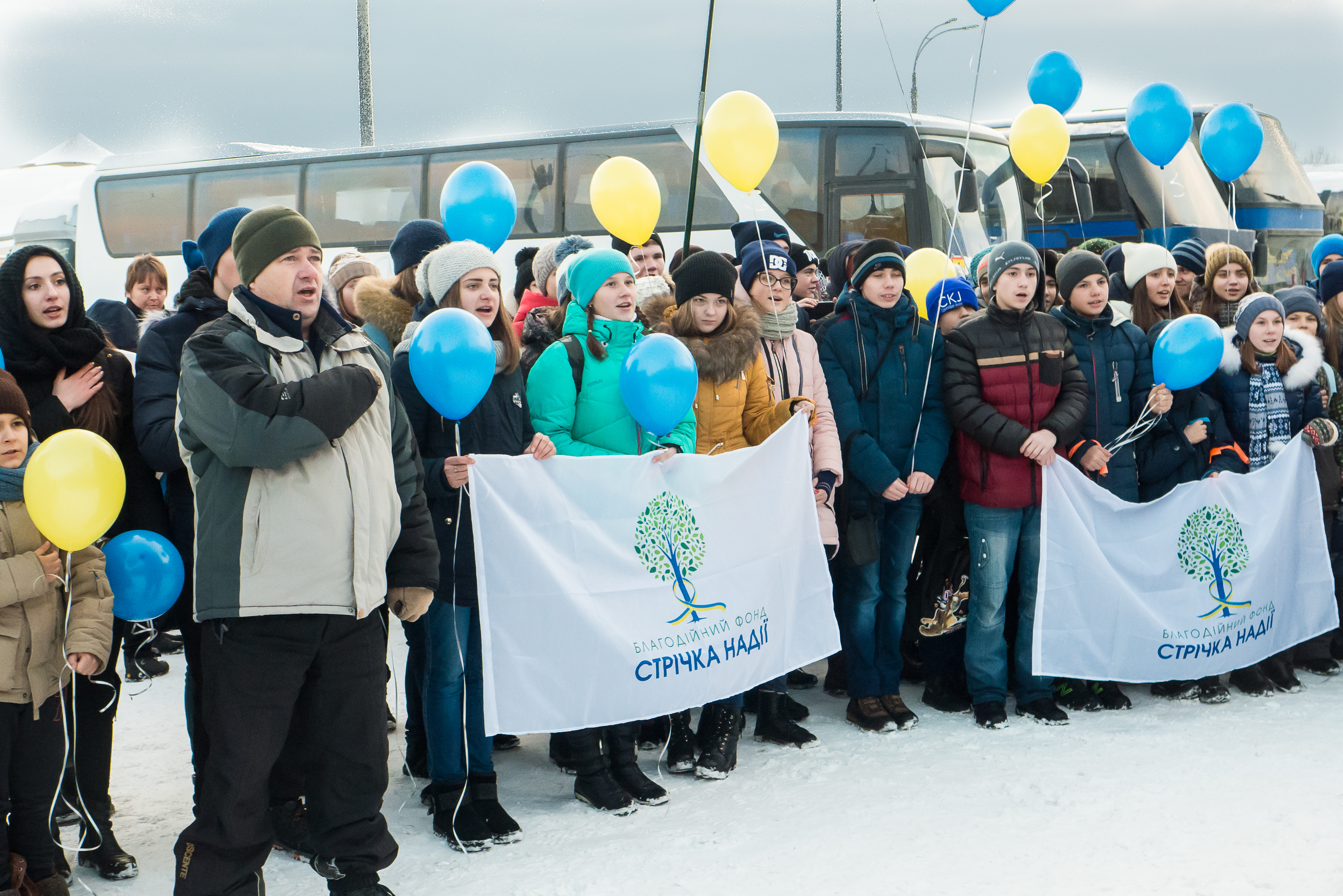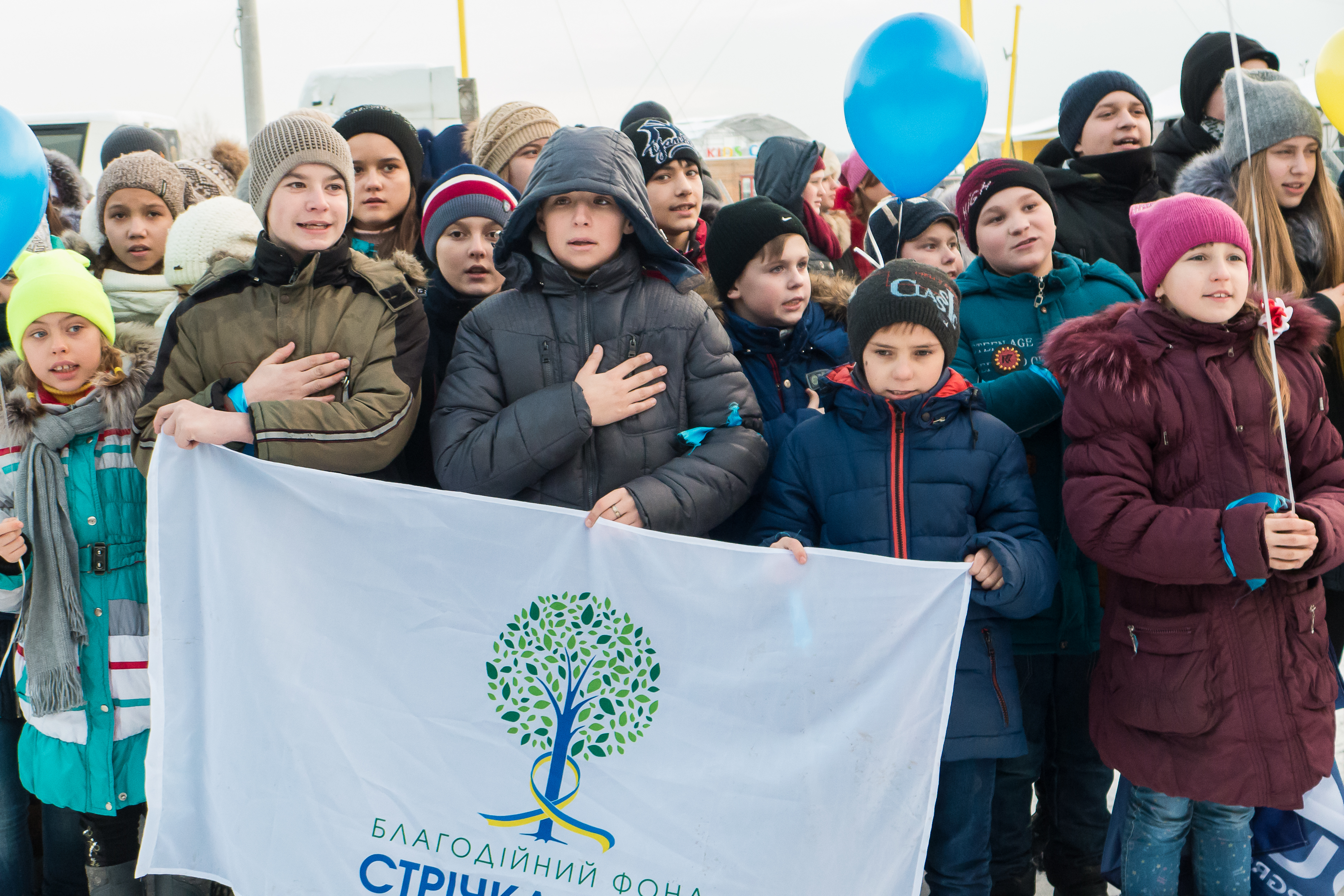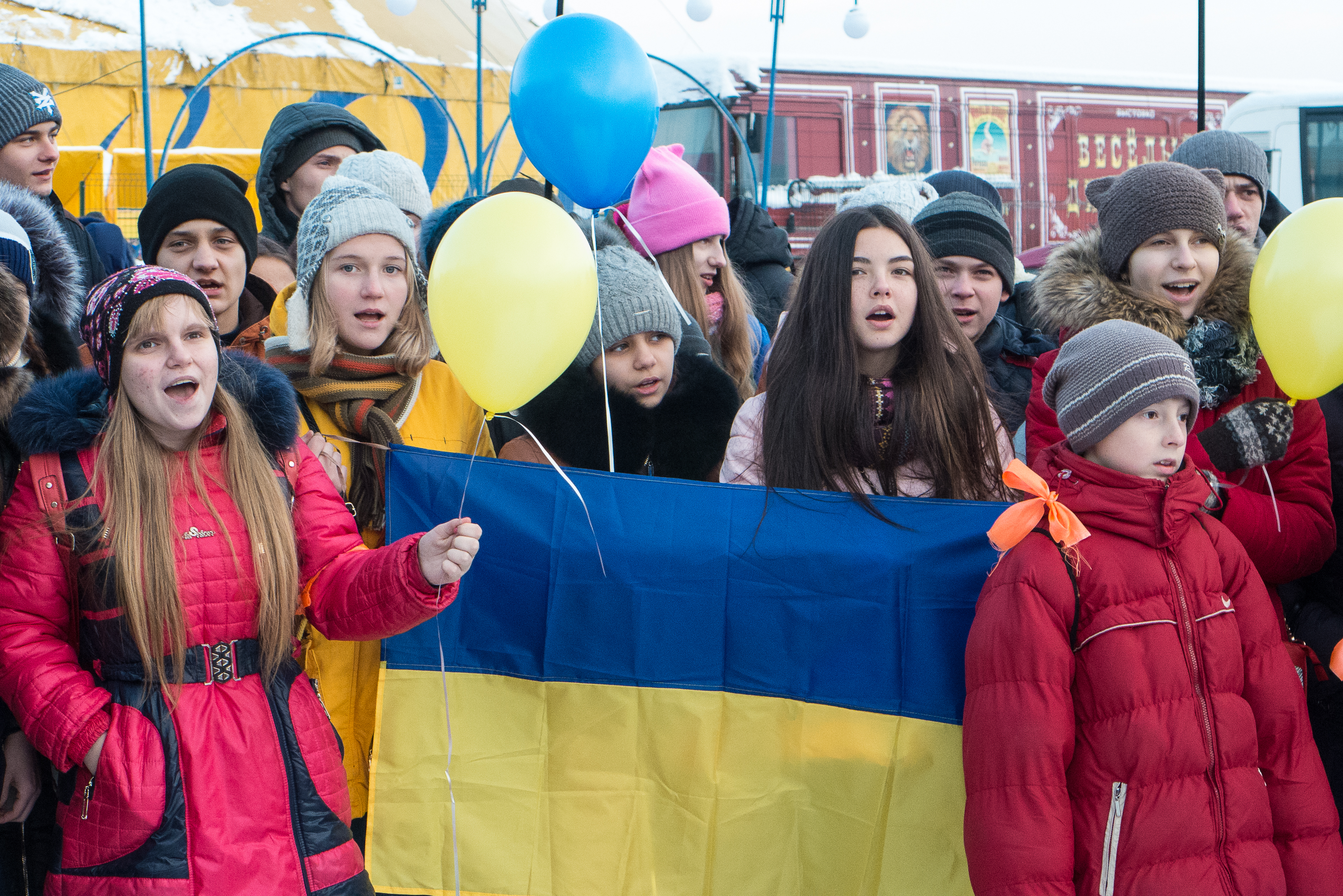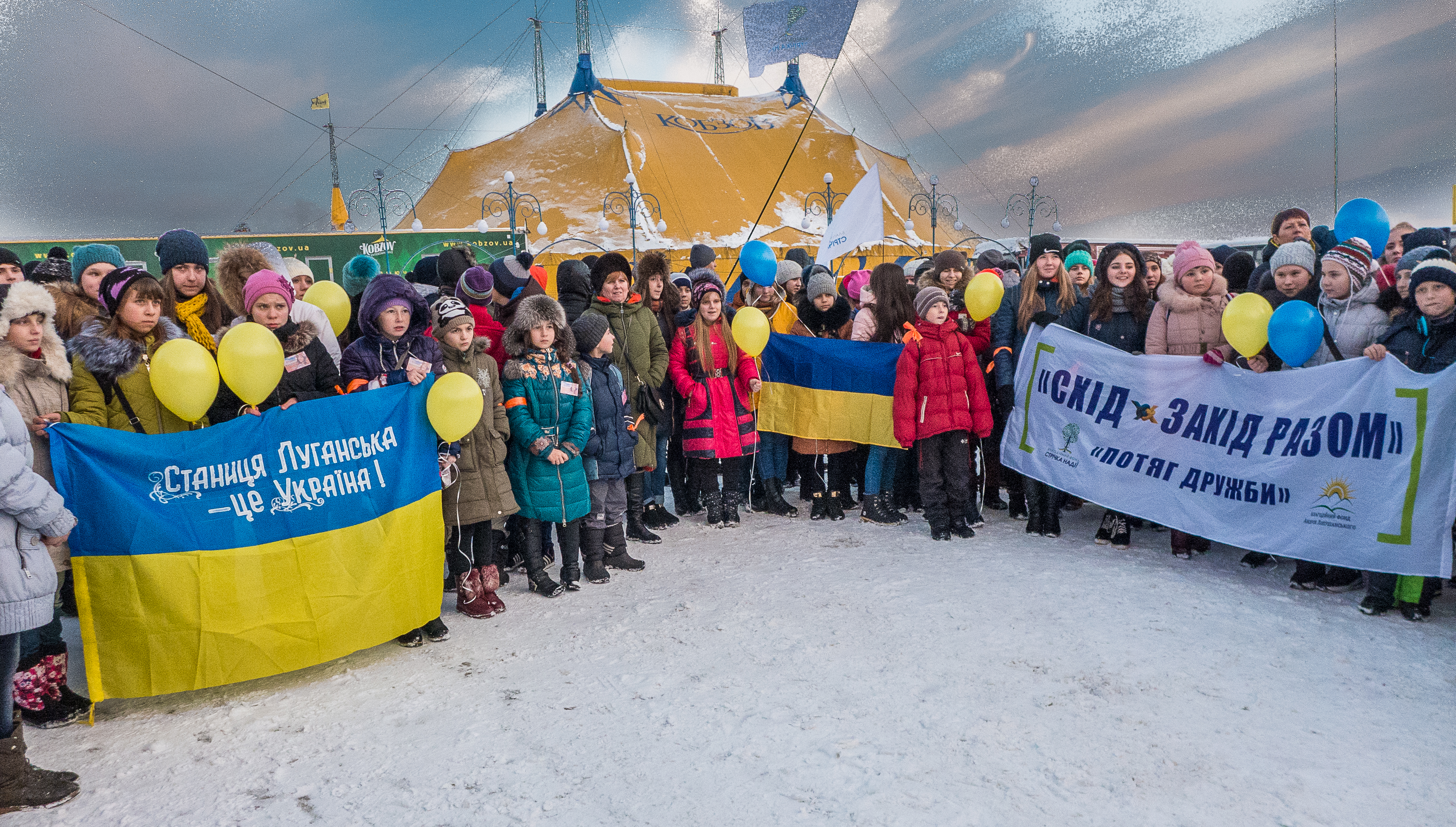 Як і планувалося, всі діти з «Потягу Дружби» приїхали до нашого цирку. Ми заспівали разом гімн України, запустили у небо жовто-блакитні кулі.