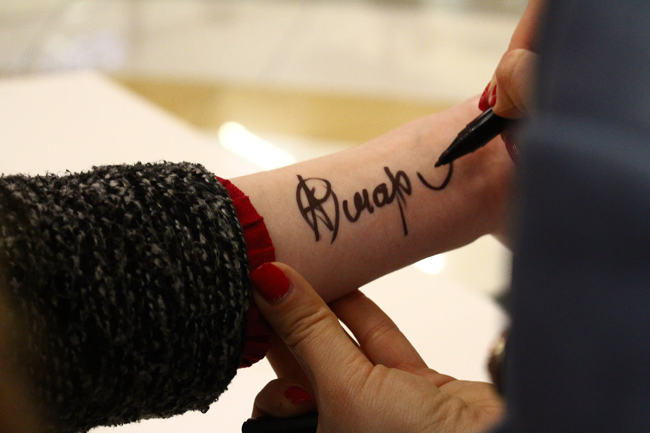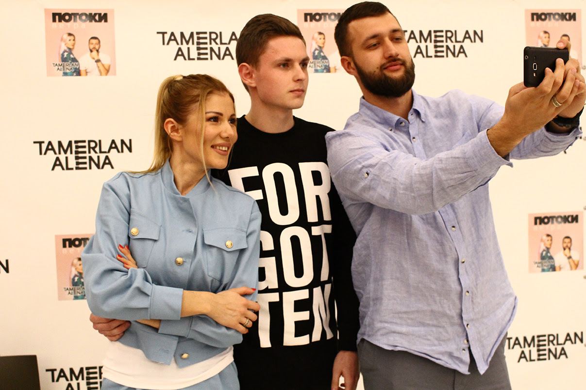 Расписываясь даже на руках у поклонниц TamerlanAlena шутили, делали смешные фото и призывали покупать их альбом на музыкальных сервисах, что наиболее актуально в эру цифровых технологий.