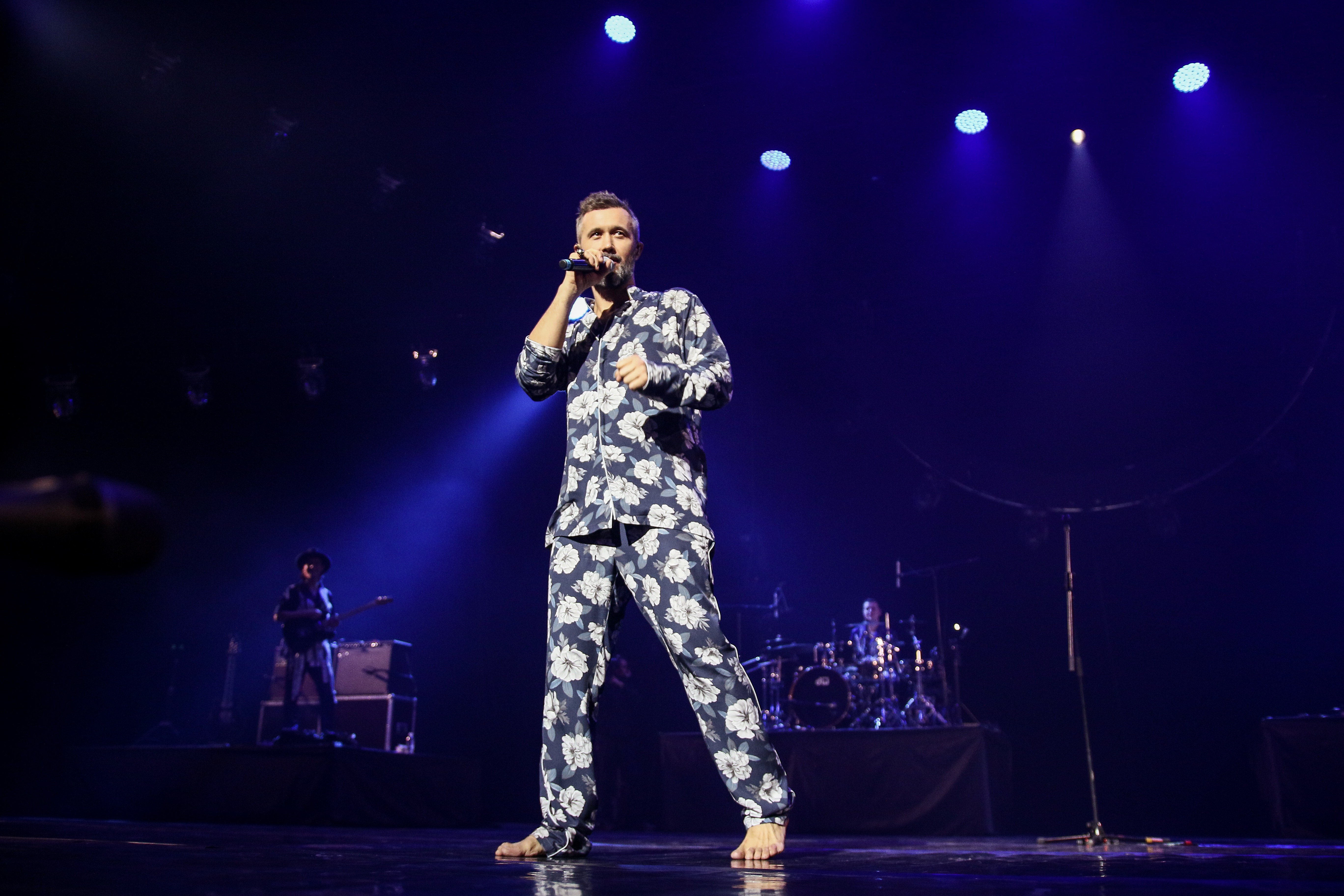 Невероятные образы музыкантов для концерта специально подготовила Леся Патока: на Сергее был экстравагантный костюм настоящего волшебника, целителя музыкой, а на одежде группы были изображены стилизованные цитаты из песен Бабкина.