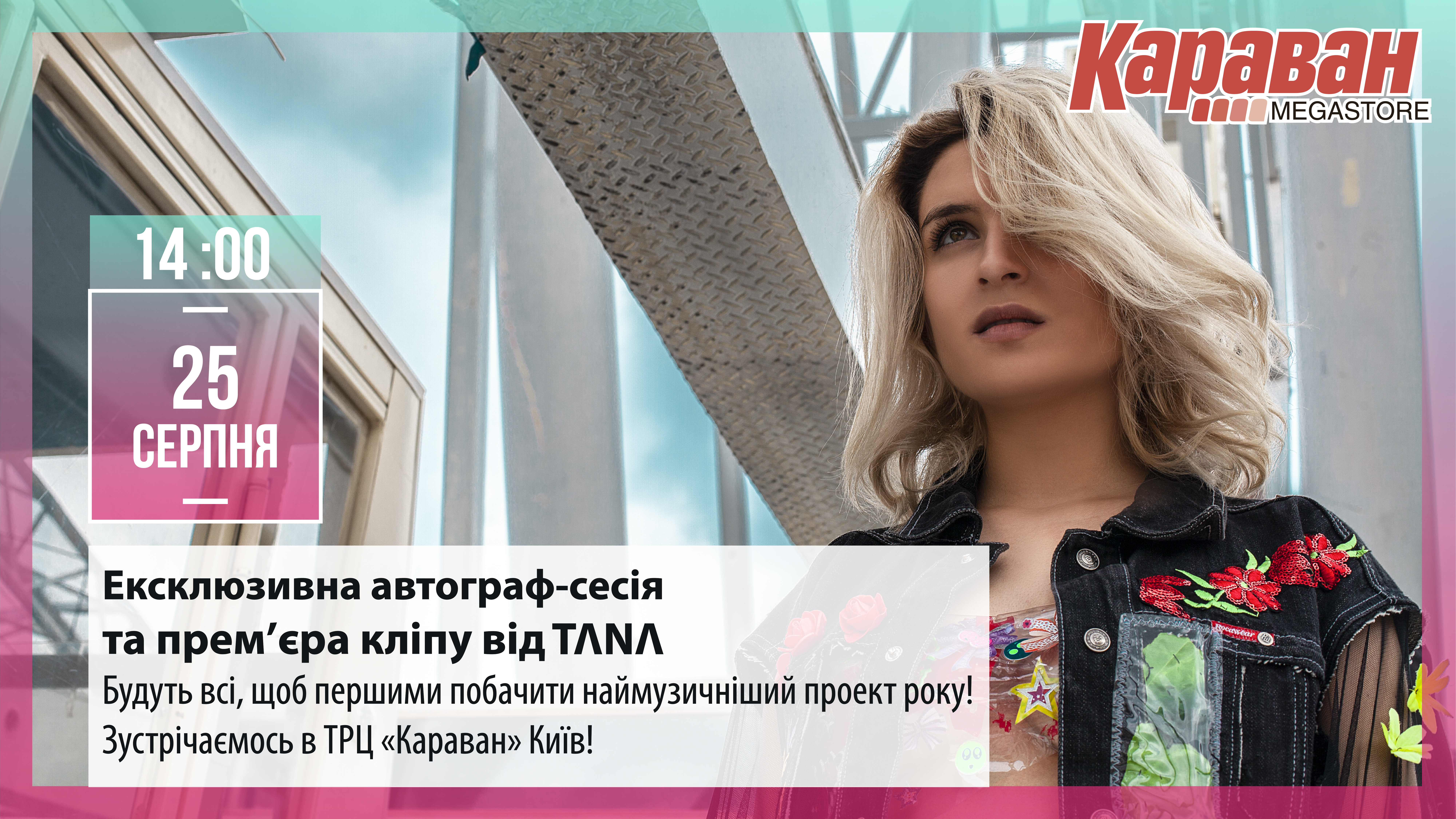 25 августа в 14:00 состоится эксклюзивная автограф-сессия и премьера клипа TANA в ТРЦ Караван. У всех поклонников будет возможность пообщаться с музыкантами, взять их автограф, услышать полюбившие композиции с альбома Broken, а также увидеть новую видеоработу на песню «I don’t car».