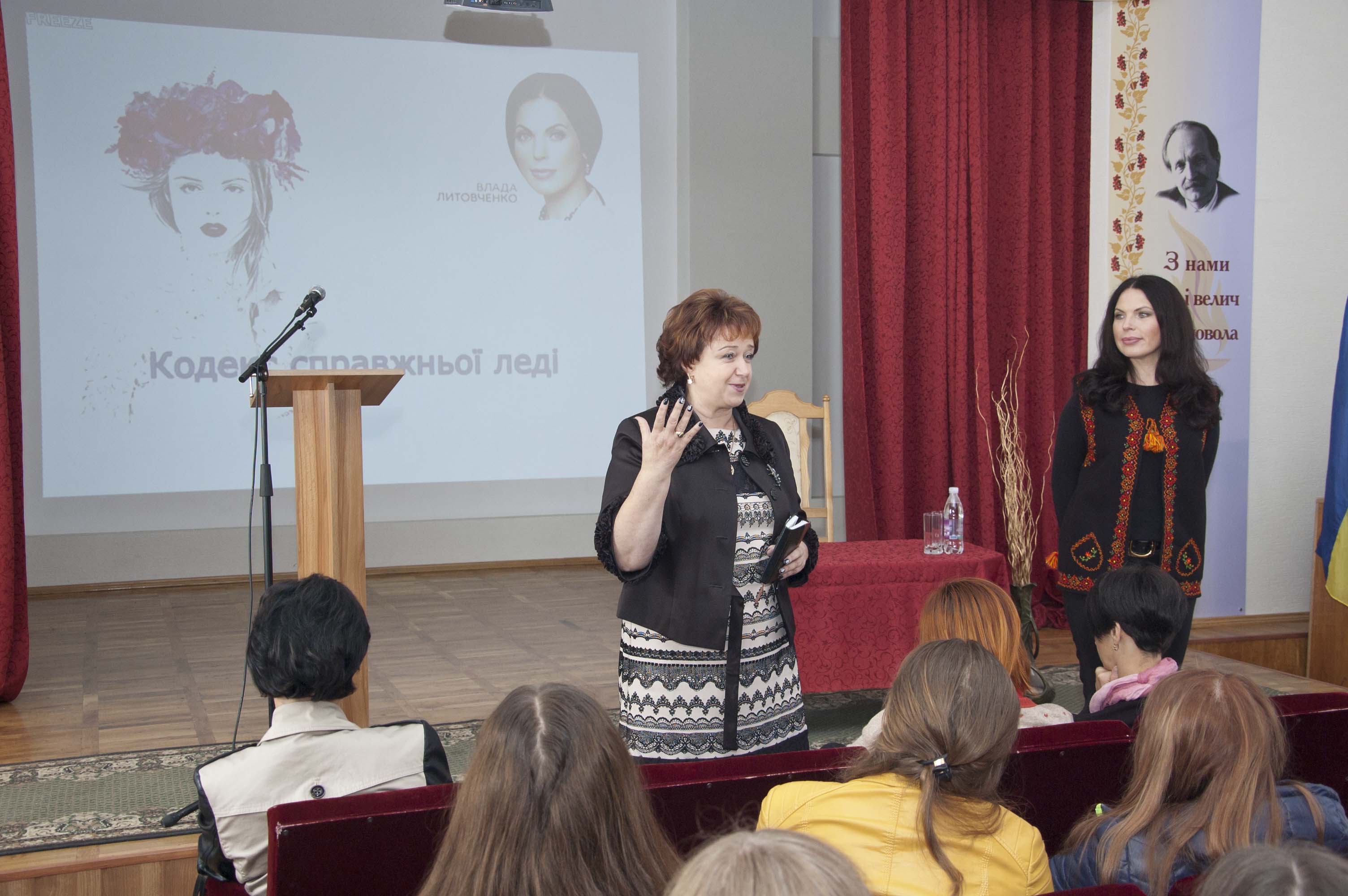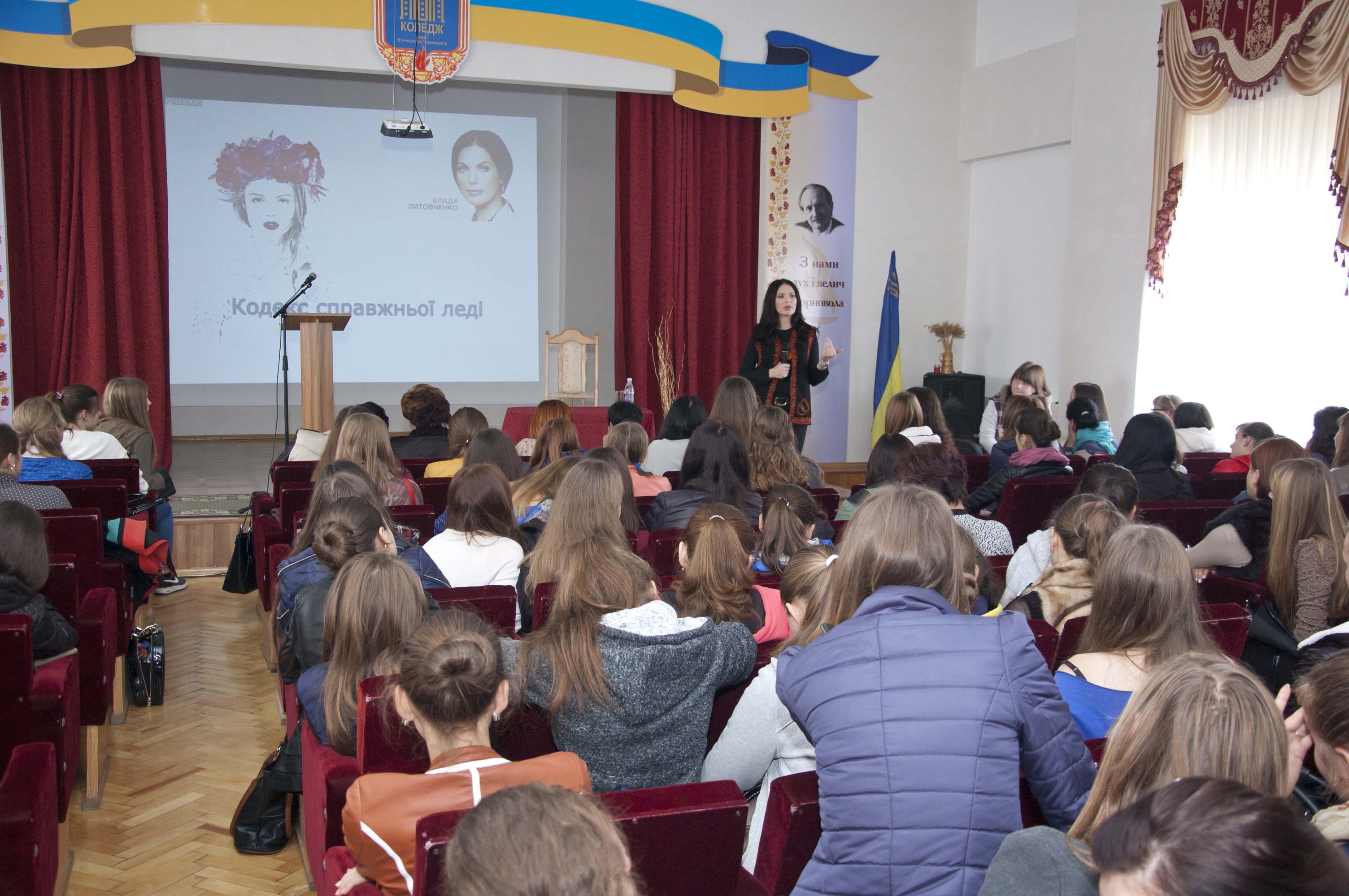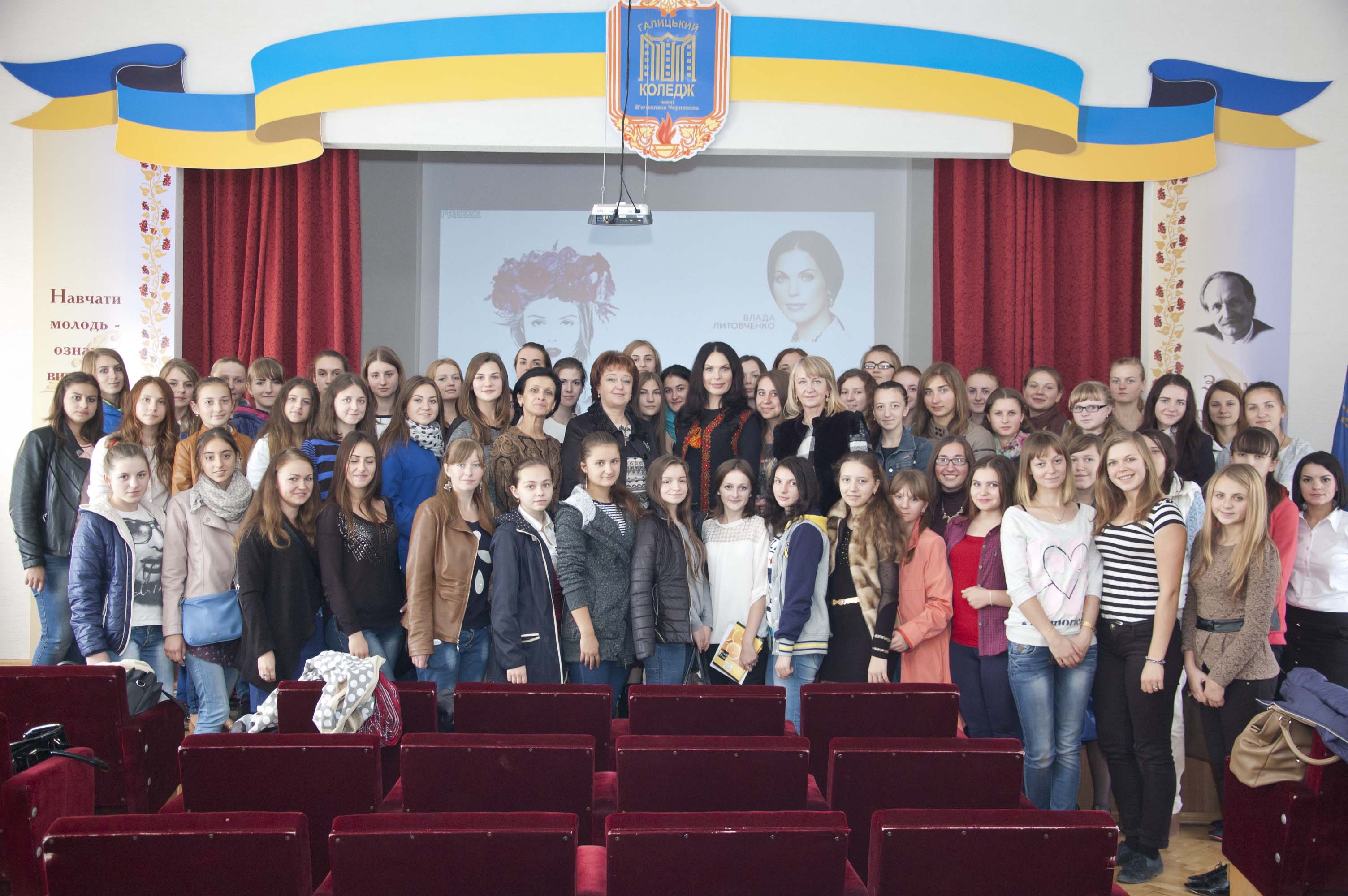 Во время короткой поездки на Западную Украину Владе Литовченко удалось провести мастер-класс для студенток Галицкого колледжа имени Вячеслава Черновола, а также прочитать авторскую лекцию “Кодекс настоящей леди”.
