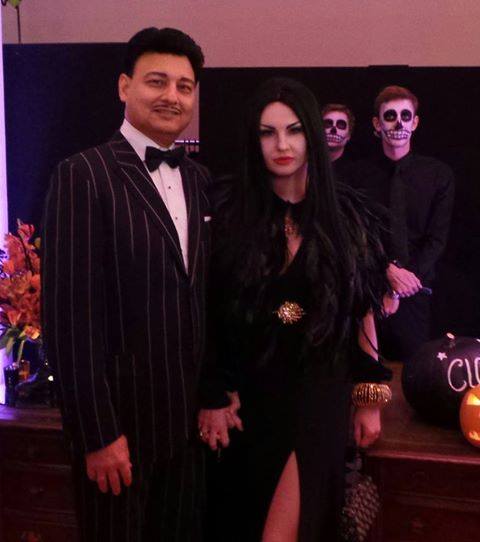Молодые родители Камалия с Захуром нарядились в героев фильма «Семейка Адамсов», образ хоть и не новый, но по всему видно, продуманный.