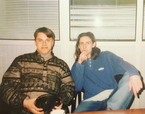 “ Да-да! Эта жгучая брюнетка справа, комплексующая по поводу размера своей груди — Я️. Год не помню. Вероятно, 1996.”