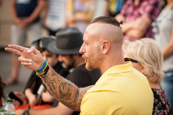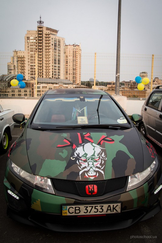 Днями на крыше парковки универмага “Украина” состоялся конкурс авто с патриотической символикой. Это социальный проект, целью которого было помочь повышению гордости за принадлежность к украинской нации.